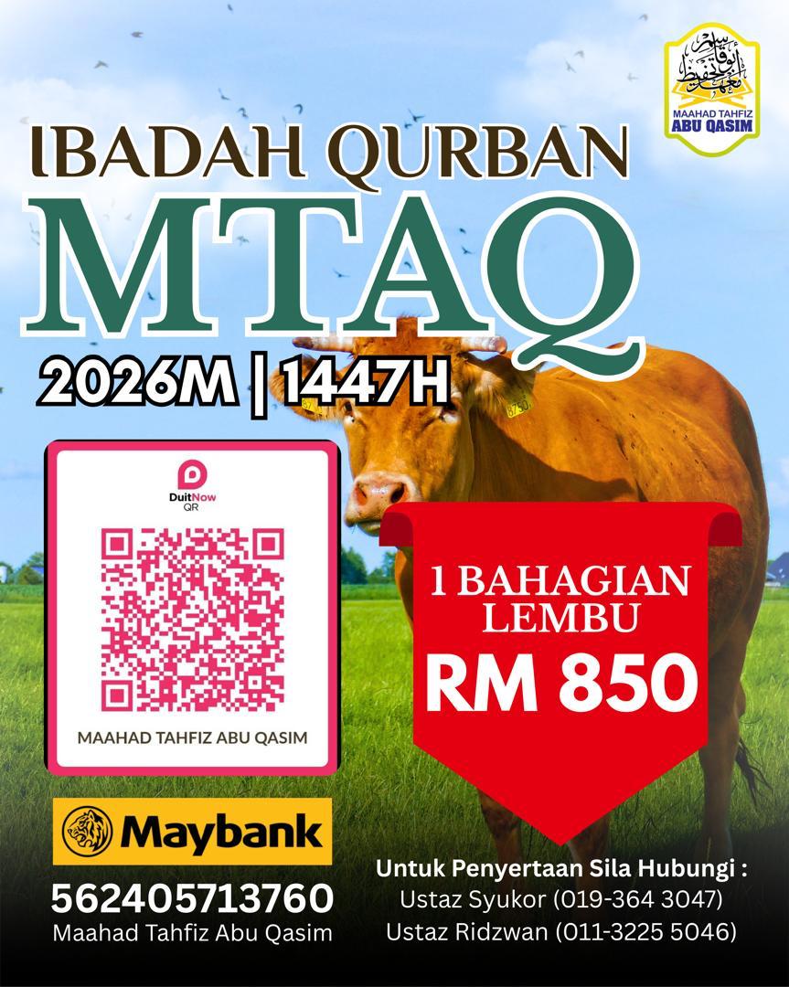 Infaq umum untuk kegunaan dan perbelanjaan pengurusan Maahad Tahfiz Abu Qasim (MTAQ)